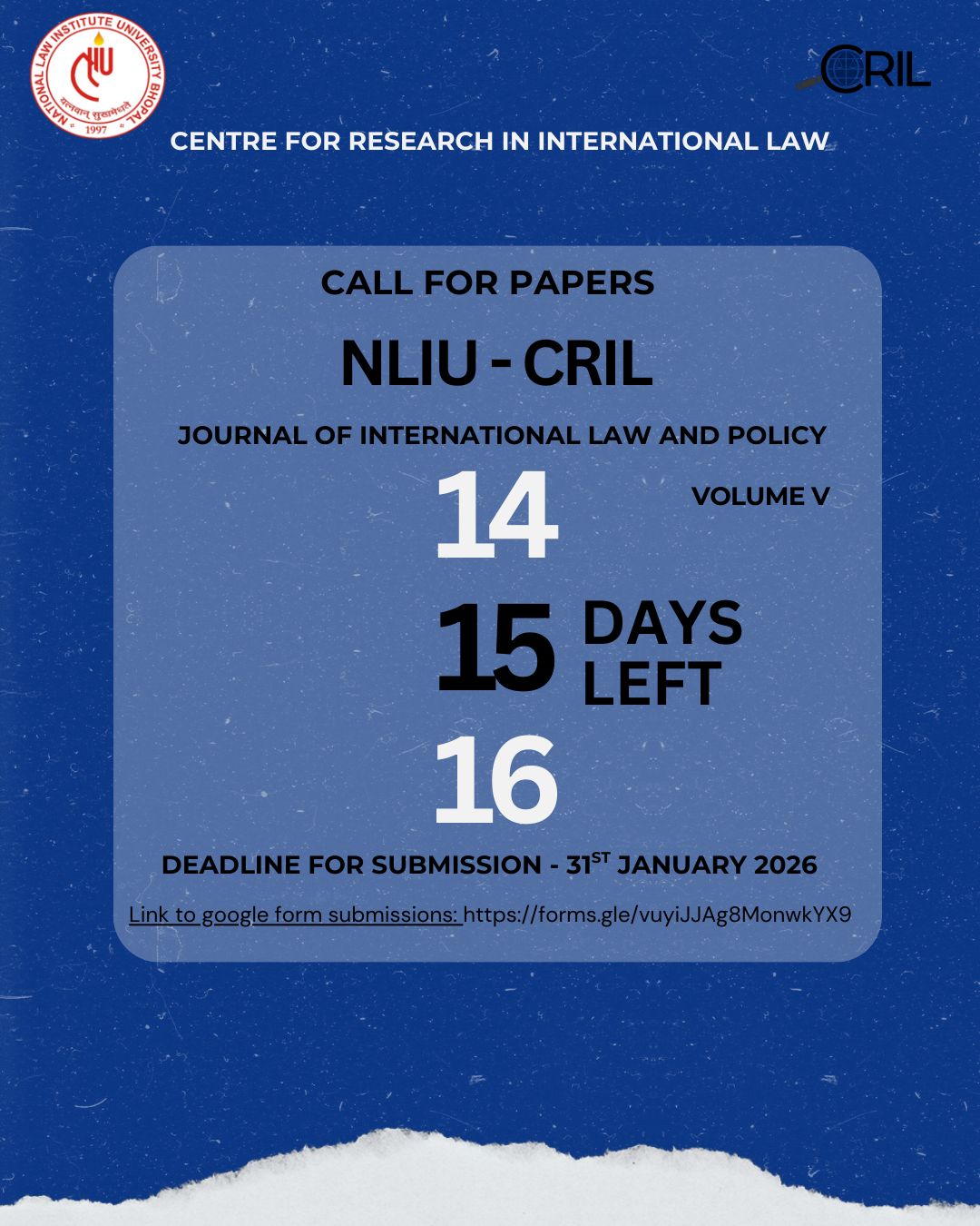 15 Days Left | Call for Submissions | Volume V | Submission Deadline: 31 January 2026, 11:59 PM IST