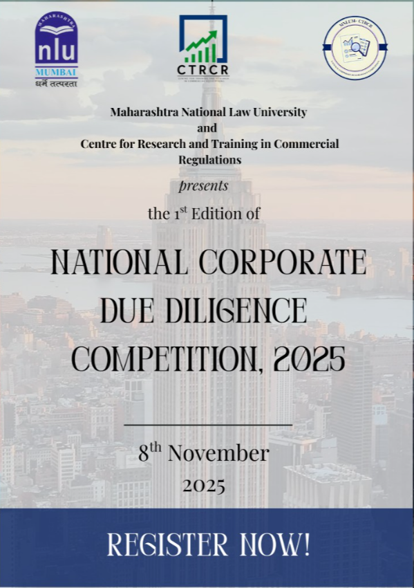 The Centre for Training and Research in Commercial Regulations (CTRCR) at Maharashtra National Law University, Mumbai, is hosting the 1st National Corporate Due Diligence Competition, 2025. The event aims to cultivate the next generation of transactional lawyers by testing participants on due diligence, compliance, and negotiation in corporate transactions.