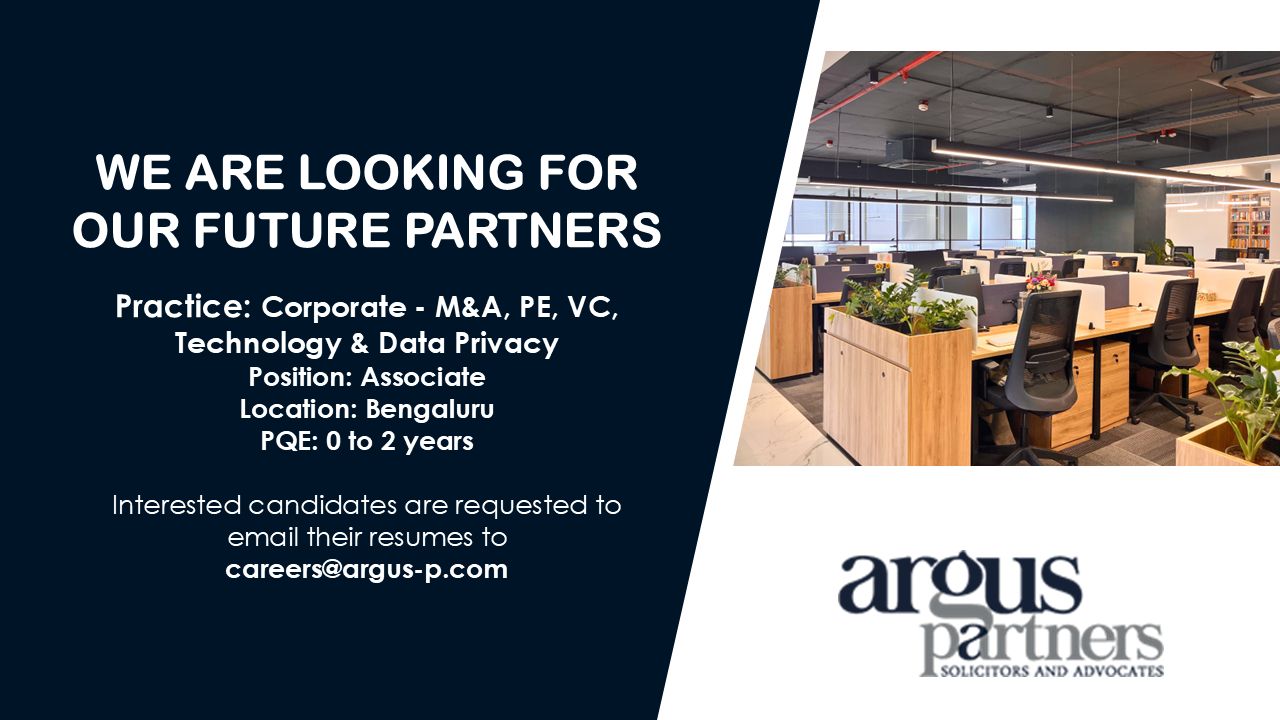 Argus Partners is inviting applications for the position of Associate to join its Corporate Practice at the Bengaluru office.