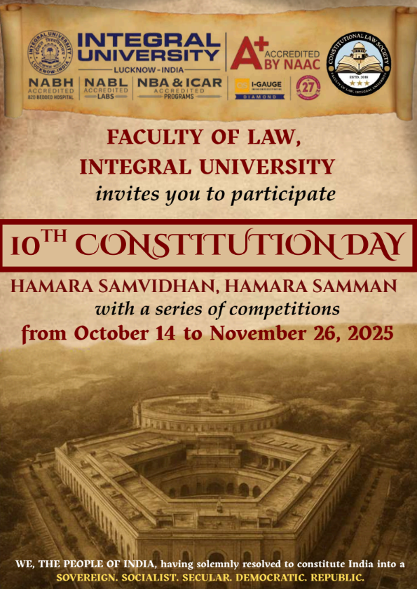 The Constitutional Law Society, Faculty of Law, Integral University is organizing the 8th Edition of its Poster Making Competition, on the occasion of Constitution Day, 2025.