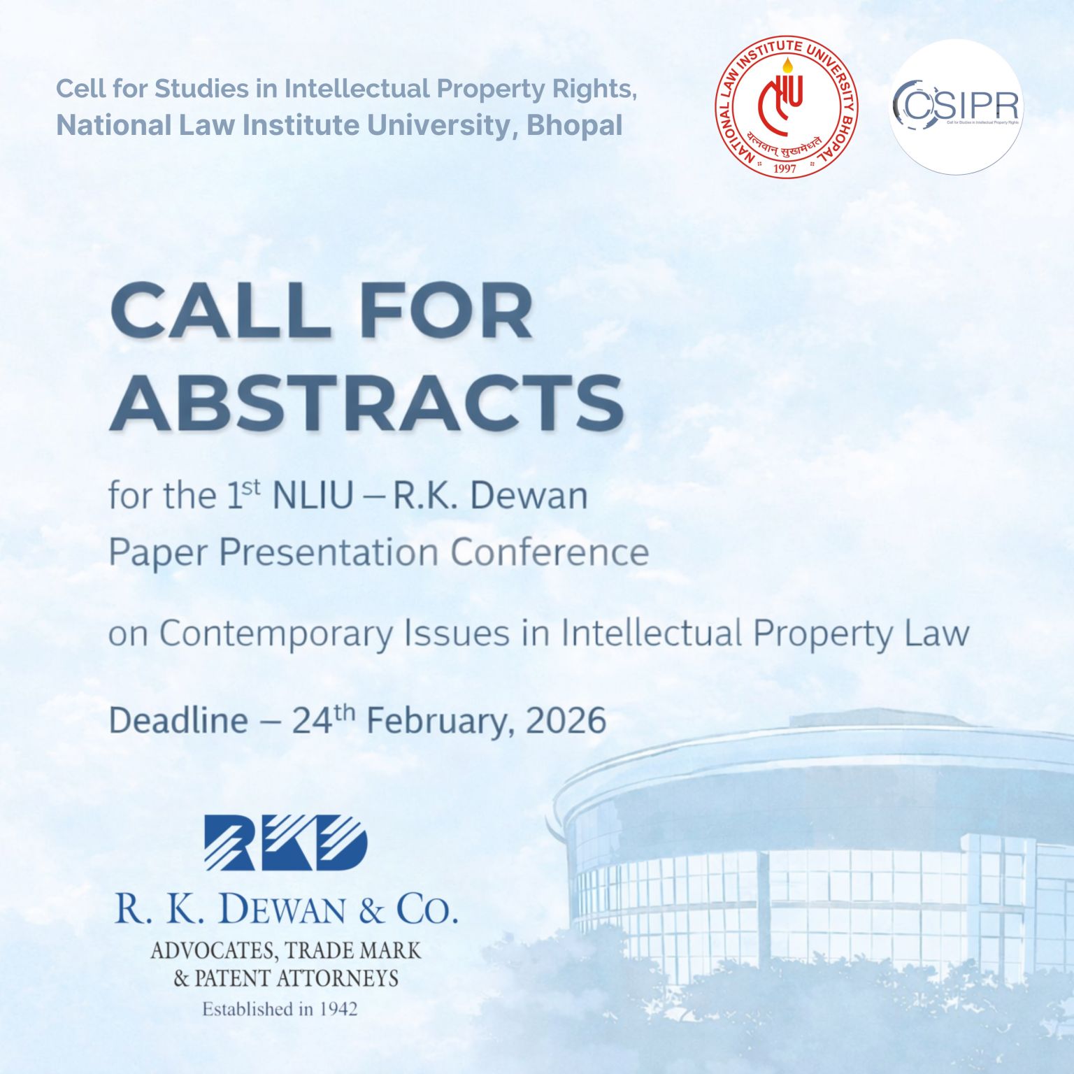 The National Law Institute University, Bhopal, through its Cell for Studies in Intellectual Property Rights, is inviting abstract submissions for the 1st NLIU–R.K. Dewan Paper Presentation Conference on Contemporary Issues in Intellectual Property Law.