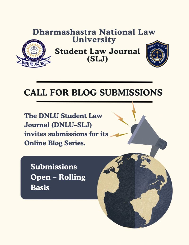 The DNLU Student Law Journal (DNLU-SLJ) invites submissions for its Online Blog Series. The initiative aims to promote academic dialogue, encourage critical legal analysis, and provide a platform for scholarly engagement on contemporary legal and interdisciplinary issues.
