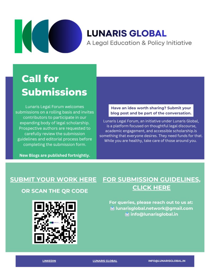 Applications are invited for blog submissions at Lunaris Legal Forum, a platform dedicated to promoting academic engagement and discourse on contemporary legal and policy issues.