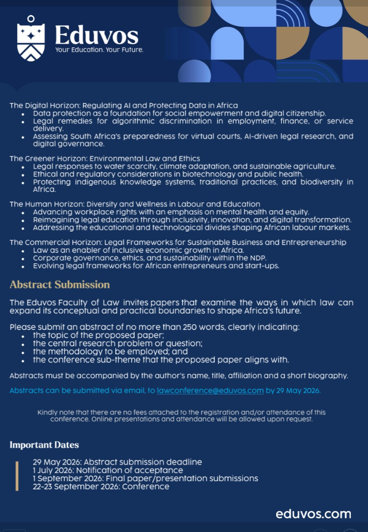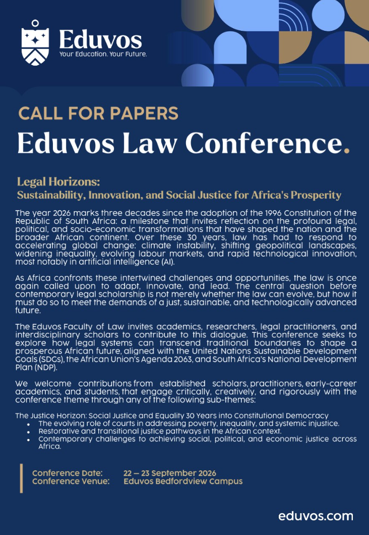 The Eduvos Law Conference 2026 invites submissions for its upcoming edition themed: