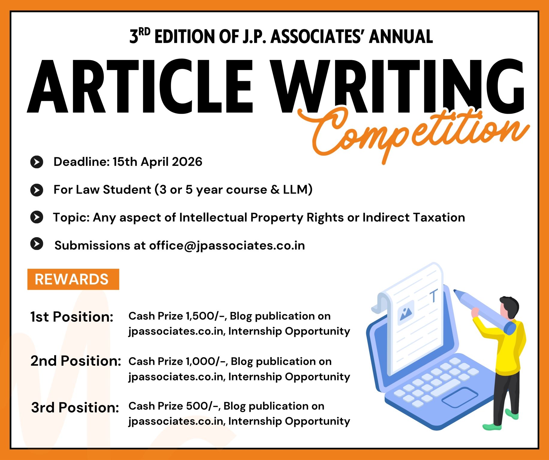 J.P. Associates is inviting entries for the 3rd Edition of its Annual Article Writing Competition, 2026, providing law students an opportunity to engage in meaningful legal research and writing.
