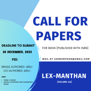 Mail the manuscript at lexmanthan@gmail.com with subject line “Submission”.