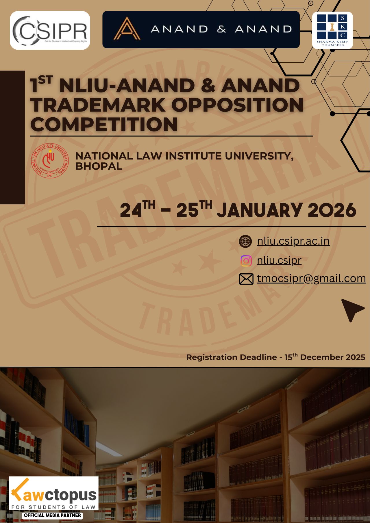 The Cell for Studies in Intellectual Property Rights (CSIPR), National Law Institute University (NLIU), Bhopal, is pleased to announce the 1st NLIU–Anand & Anand Trademark Opposition Competition, 2026.