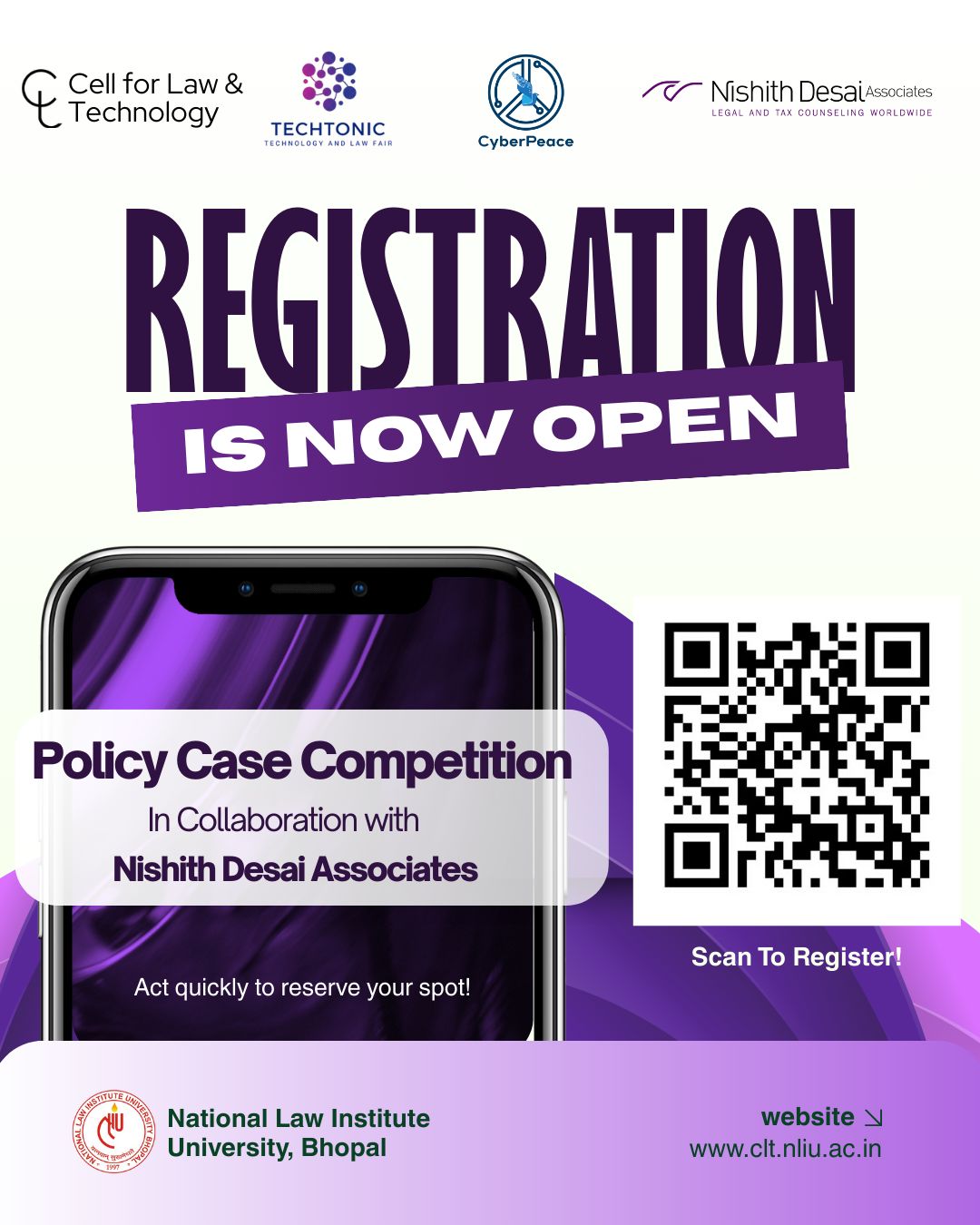 The Cell for Law and Technology (CLT), National Law Institute University, Bhopal, in collaboration with Nishith Desai Associates, is pleased to announce the NLIU–CLT Policy Case Competition 2026, to be held as part of the 5th NLIU–CLT Technology and Law Fair: Techtonic 2026.