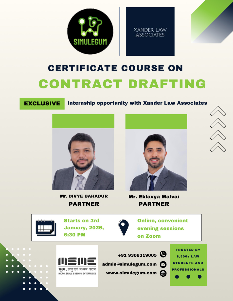 SimuLegum is pleased to announce the launch of the Certificate Course on Contract Drafting, in collaboration with Xander Law Associates.