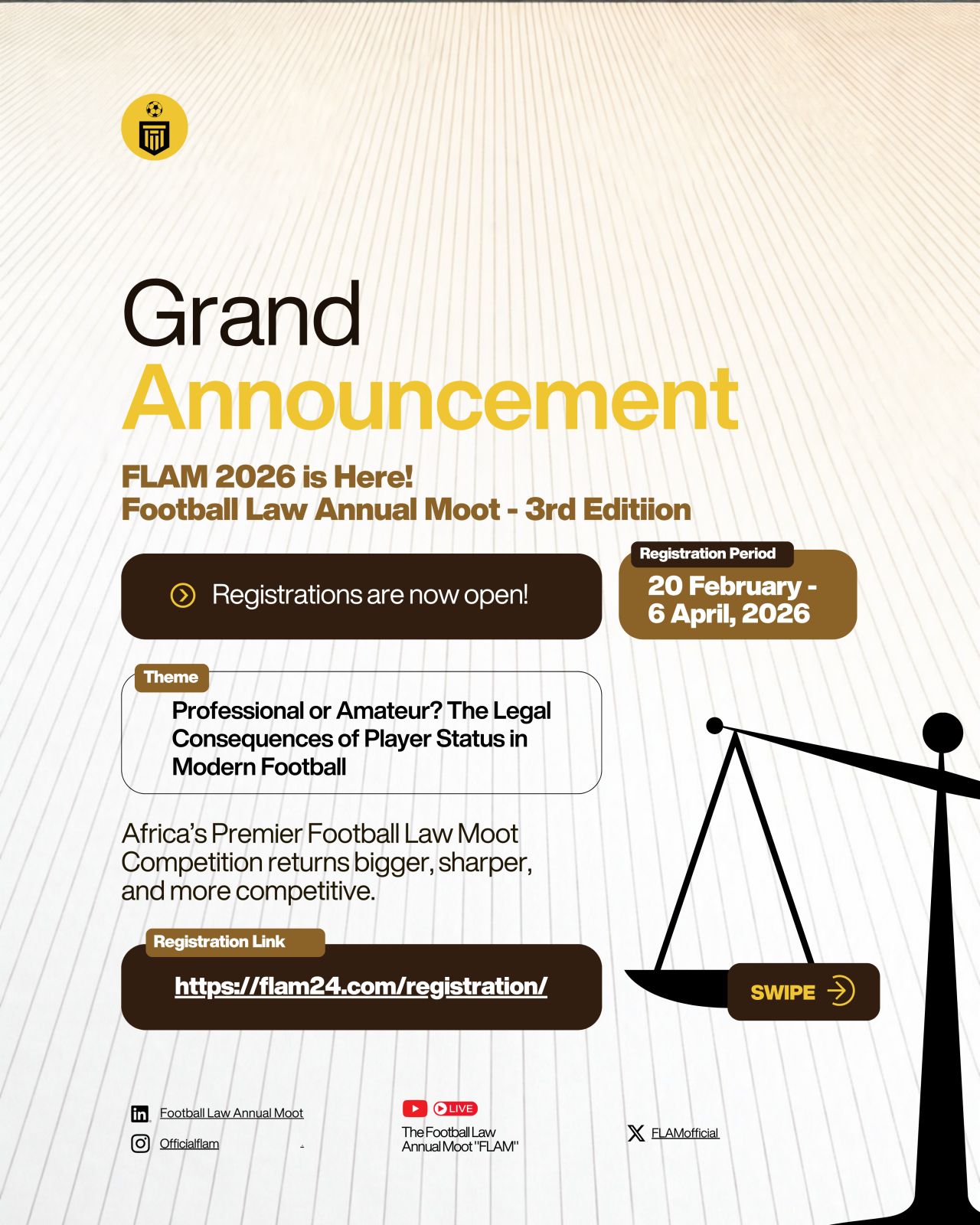 The Football Law Annual Moot returns with its much-anticipated 3rd edition, inviting law students across Africa to engage with one of the most debated questions in modern football regulation.