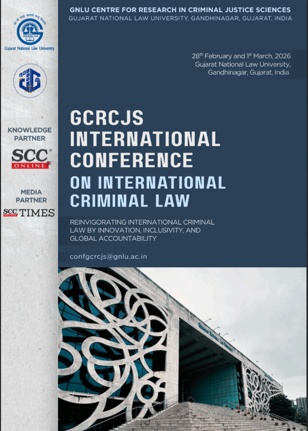 The GNLU Centre for Research in Criminal Justice Sciences (GCRCJS) is pleased to organise the “GCRCJS International Conference on International Criminal Law” on 28th February and 1st March, 2026, at Gujarat National Law University, Gandhinagar. The broad theme of the Conference is “Reinvigorating International Criminal Law through Innovation, Inclusivity, and Global Accountability.”