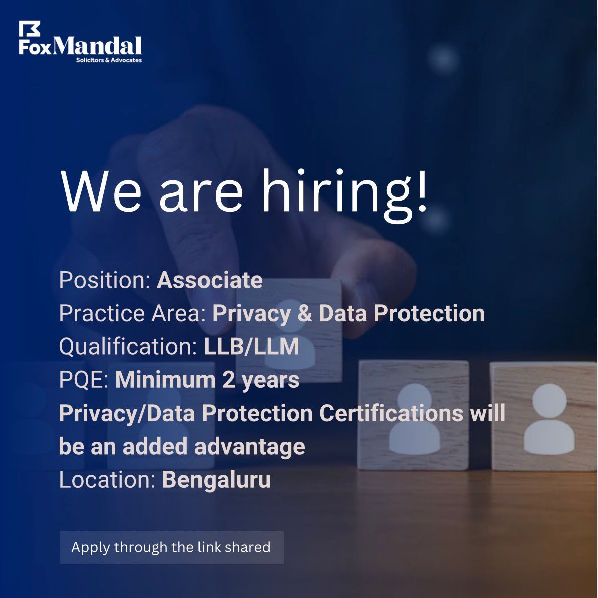 Fox Mandal & Associates is hiring an Associate for its Privacy & Data Protection practice in Bengaluru. This role is ideal for lawyers looking to specialise in technology, privacy, and regulatory advisory work.