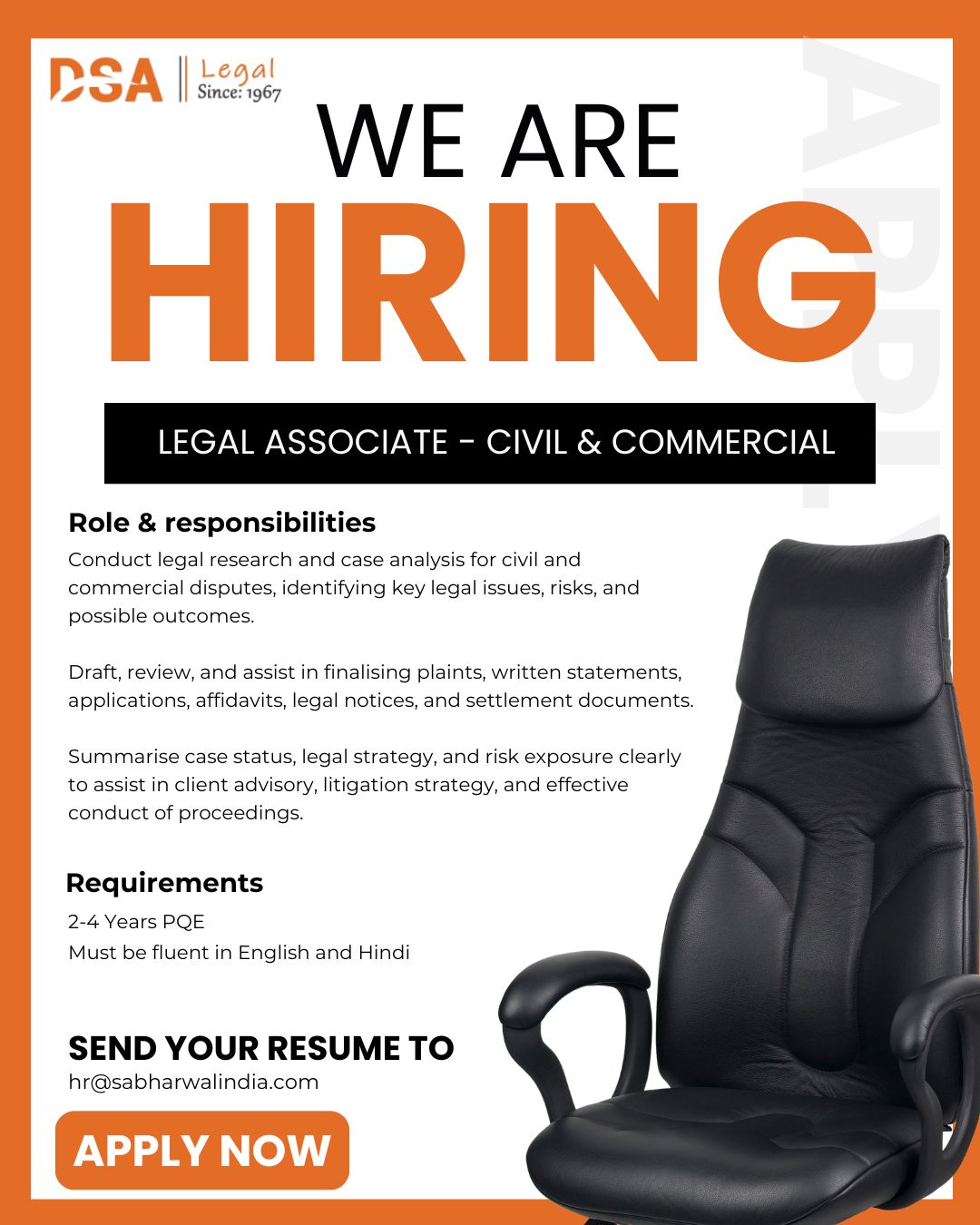 • LL.B. with 2–4 years of relevant experience in Civil & Commercial matters