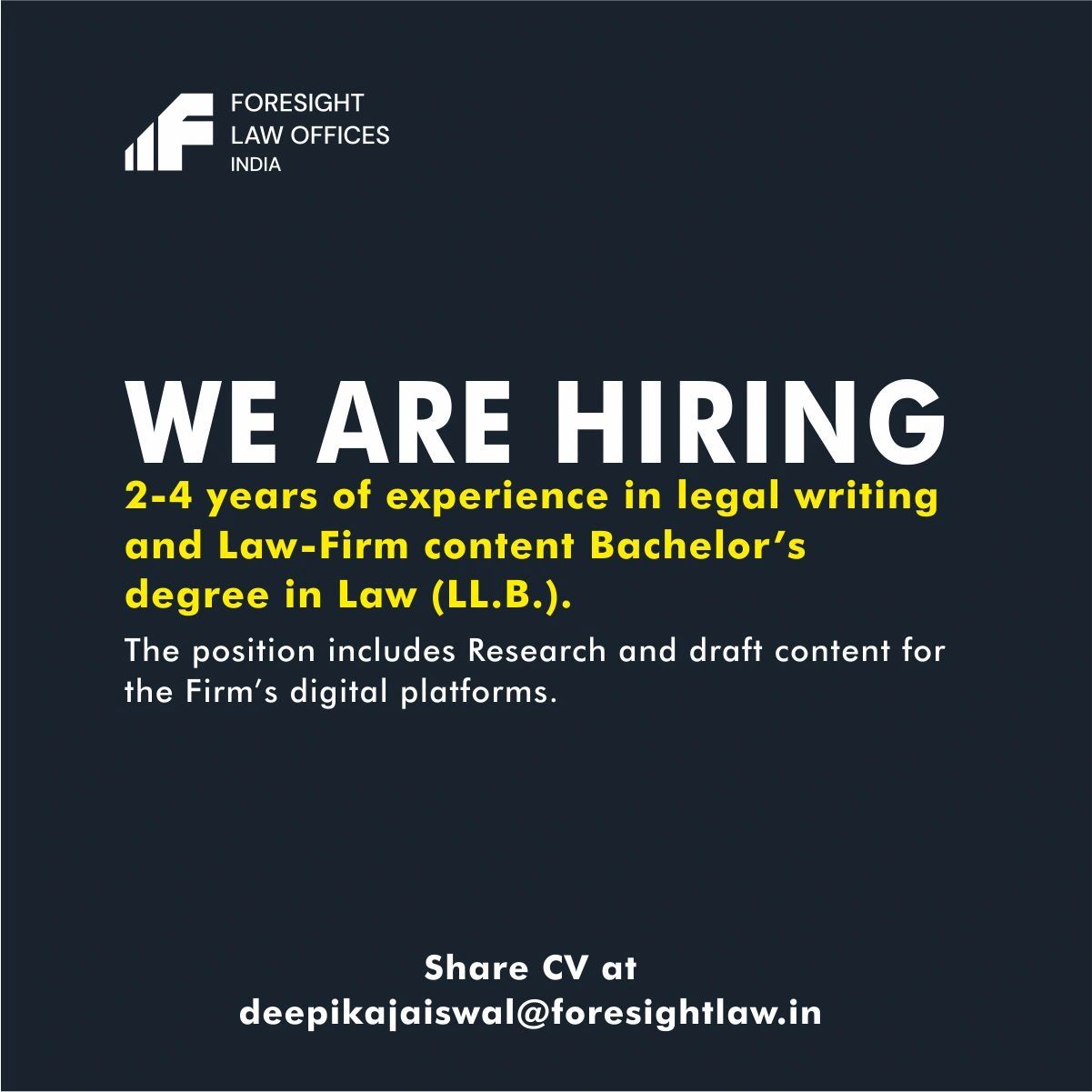 Hiring Alert | Legal Content Writer | Foresight Law Offices India