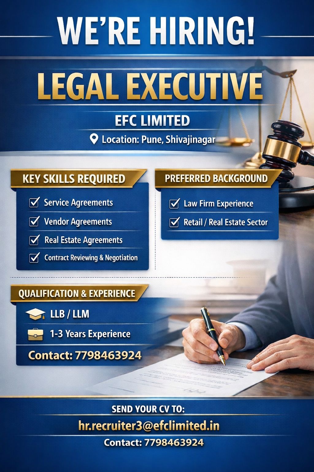 The legal team at EFC (I) Limited is expanding and we are inviting applications for the role of Legal Executive.