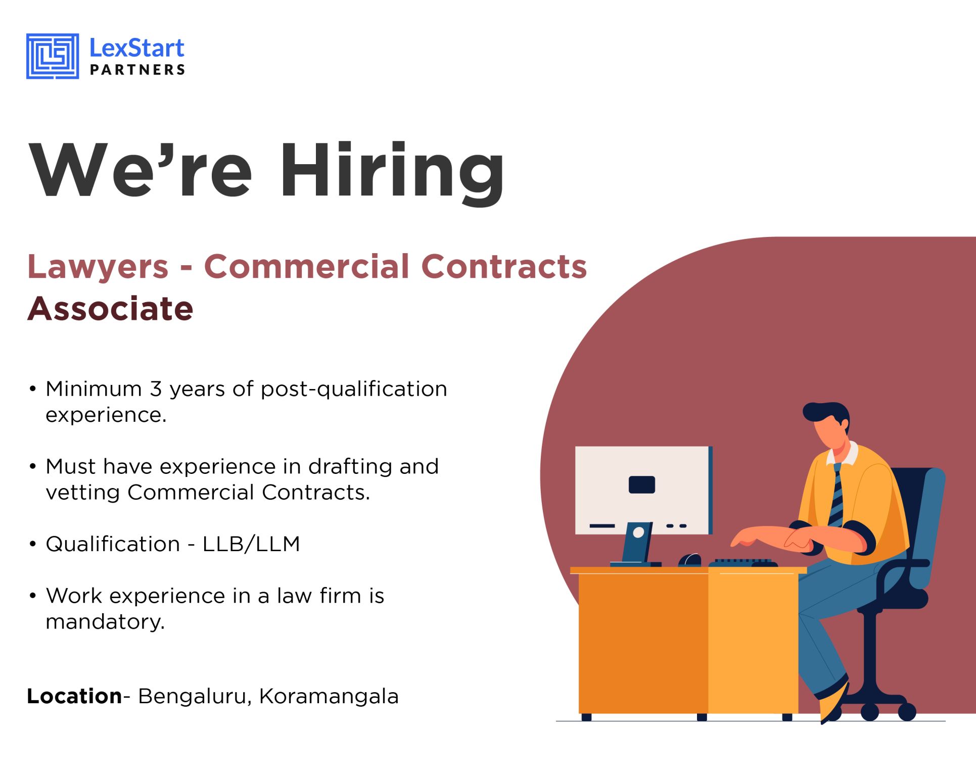 Hiring Alert| LexStart Partners |Associate – Commercial Contracts | Bengaluru (Koramangala)