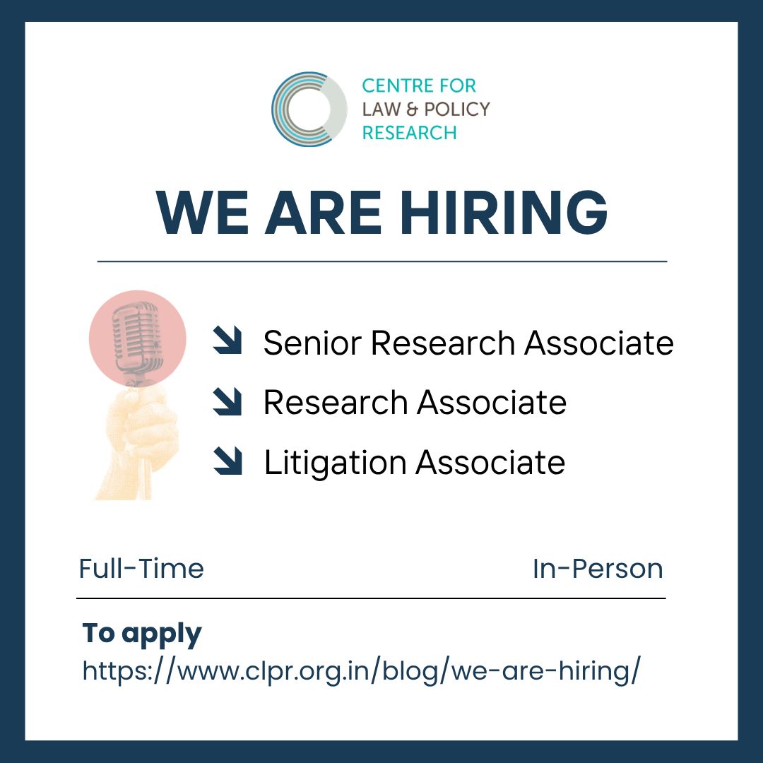 Hiring Alert | Research & Litigation Roles | Centre for Law and Policy Research (CLPR) | Apply Now