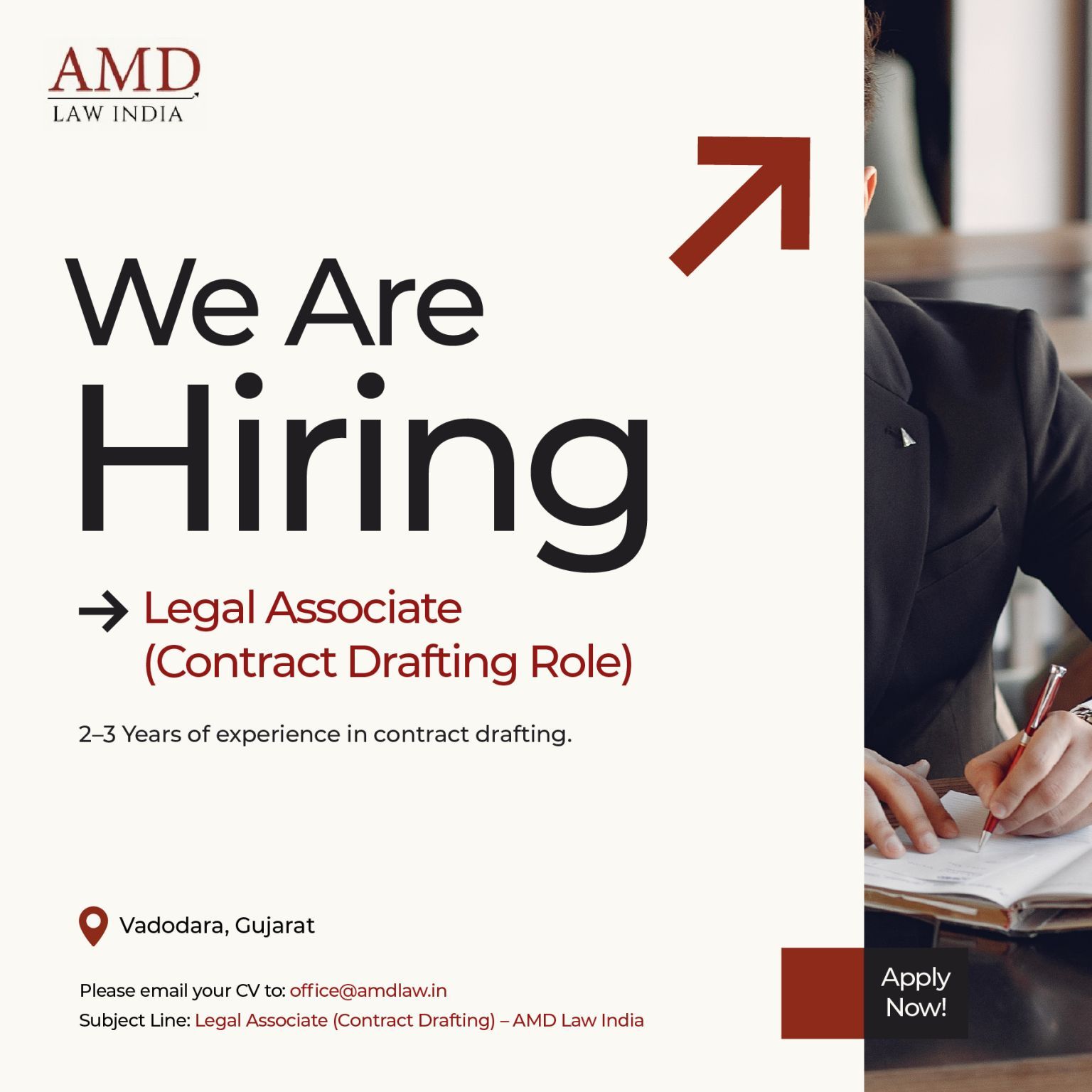 AMD Law India is inviting applications for the position of Legal Associate to join its Corporate team. The firm is looking for professionals with hands-on experience in contract drafting, review, and negotiation, who are interested in building their expertise in commercial legal work.