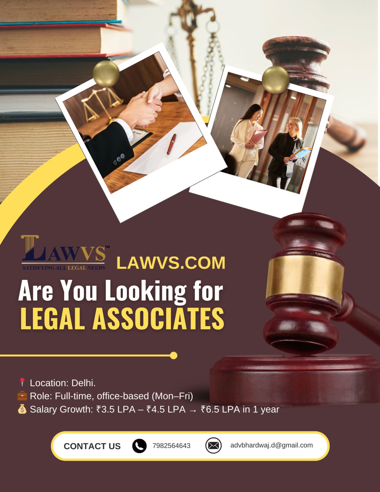 Lawvs is inviting applications to onboard 7 Legal Associates in its Law Department at Delhi. This full-time, office-based role is ideal for junior lawyers seeking structured growth, international exposure, and hands-on family law experience.