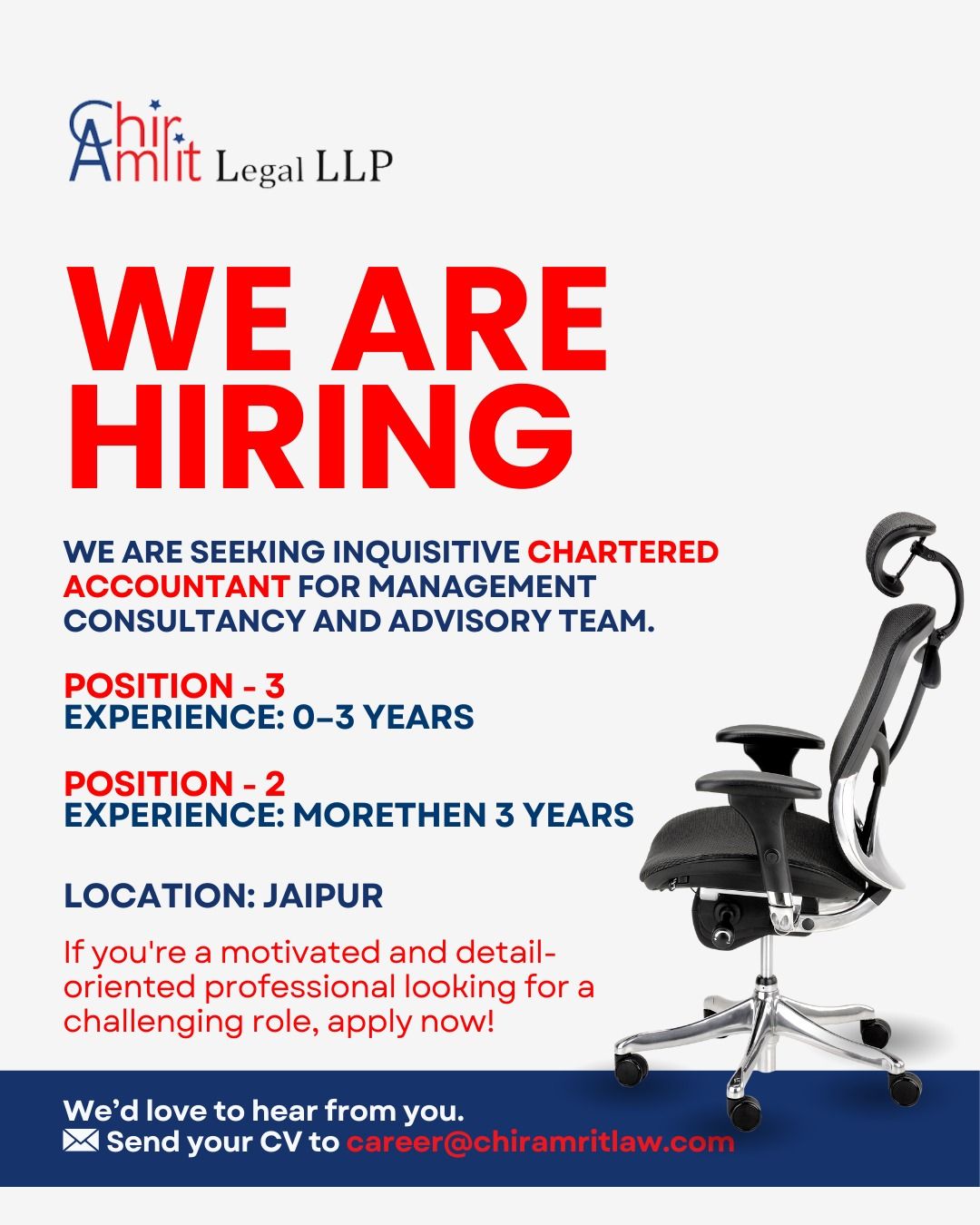 Chir Amrit Legal LLP is expanding its Management Consultancy & Advisory Team and is inviting applications from driven Chartered Accountants ready to work on high-impact assignments.