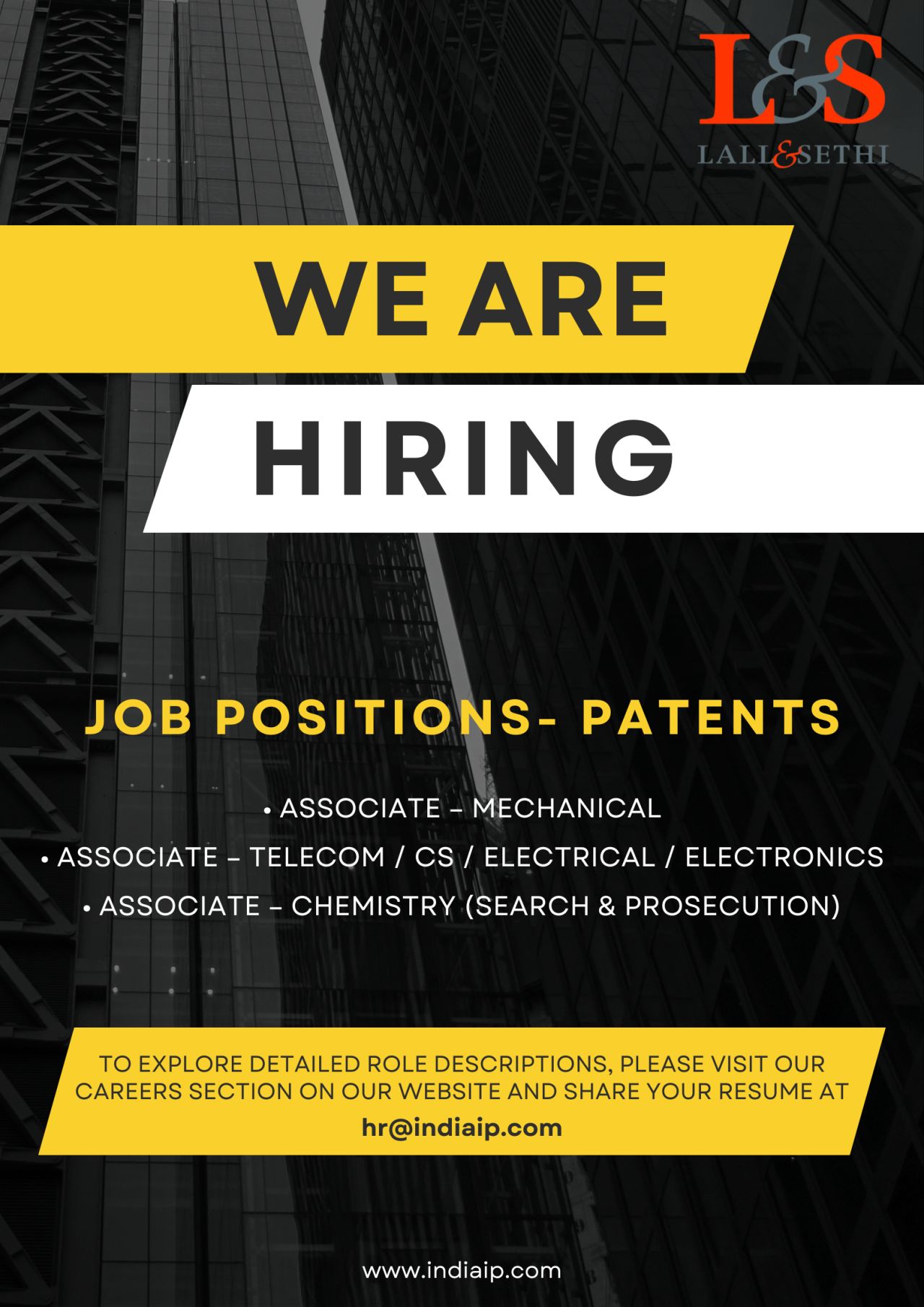 Lall & Sethi is inviting applications for multiple roles within its Patents Team, offering an opportunity to work in a well-established intellectual property practice with exposure across diverse technical domains.