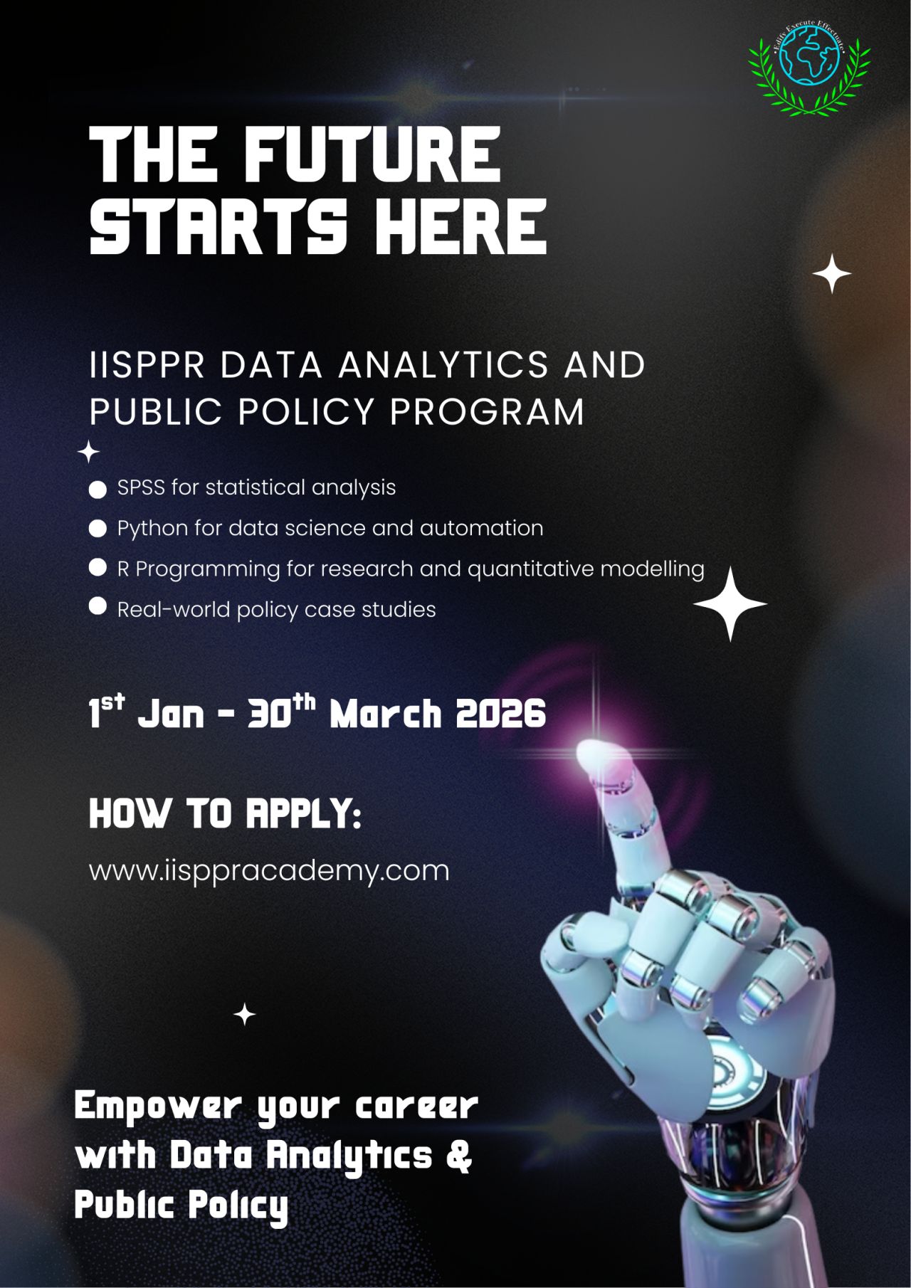 The IISPRR Data Analytics and Public Policy Program is now accepting applications for its upcoming January to March 2026 cohort. This intensive, practice-oriented program is designed for students, researchers, and working professionals seeking to strengthen their analytical capabilities and apply them to public policy, governance, and development decisions.
