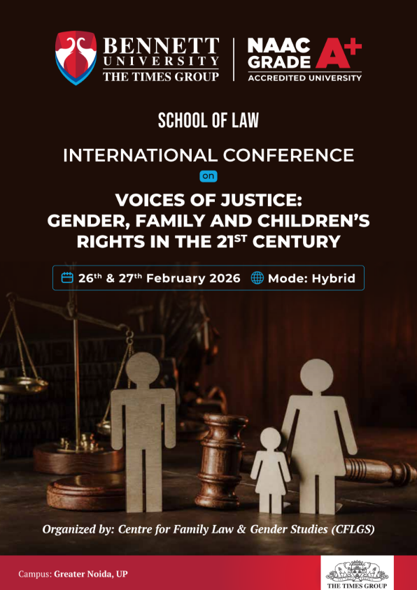 Human rights are the foundation of a just and equitable society, ensuring dignity, freedom, and fairness for all. Gender justice is an essential part of this framework, as it seeks to dismantle systemic inequalities and create a world where every individual can thrive, regardless of their identity. Gender justice being a crucial part of these conversations, plays a key role in shaping discussions around equality and social progress. However, focusing on gender alone often overlooks the complex realities of individuals who face multiple, overlapping forms of discrimination. Intersectionality helps us understand how caste, religion, disability, sexual orientation, and socioeconomic status combine to shape people’s experiences of privilege and oppression in India. The international conference on “Voices of Justice: Gender, Family and Children’s Rights in the 21st Century,” organized by the Centre for Family Law & Gender Studies, School of Law, Bennett University will provide a platform for academicians, professionals, practitioners, researchers, NGOs, students of law and allied social sciences, and other stakeholders to engage in open dialogue and collaboration, aiming to drive meaningful change for marginalized communities.