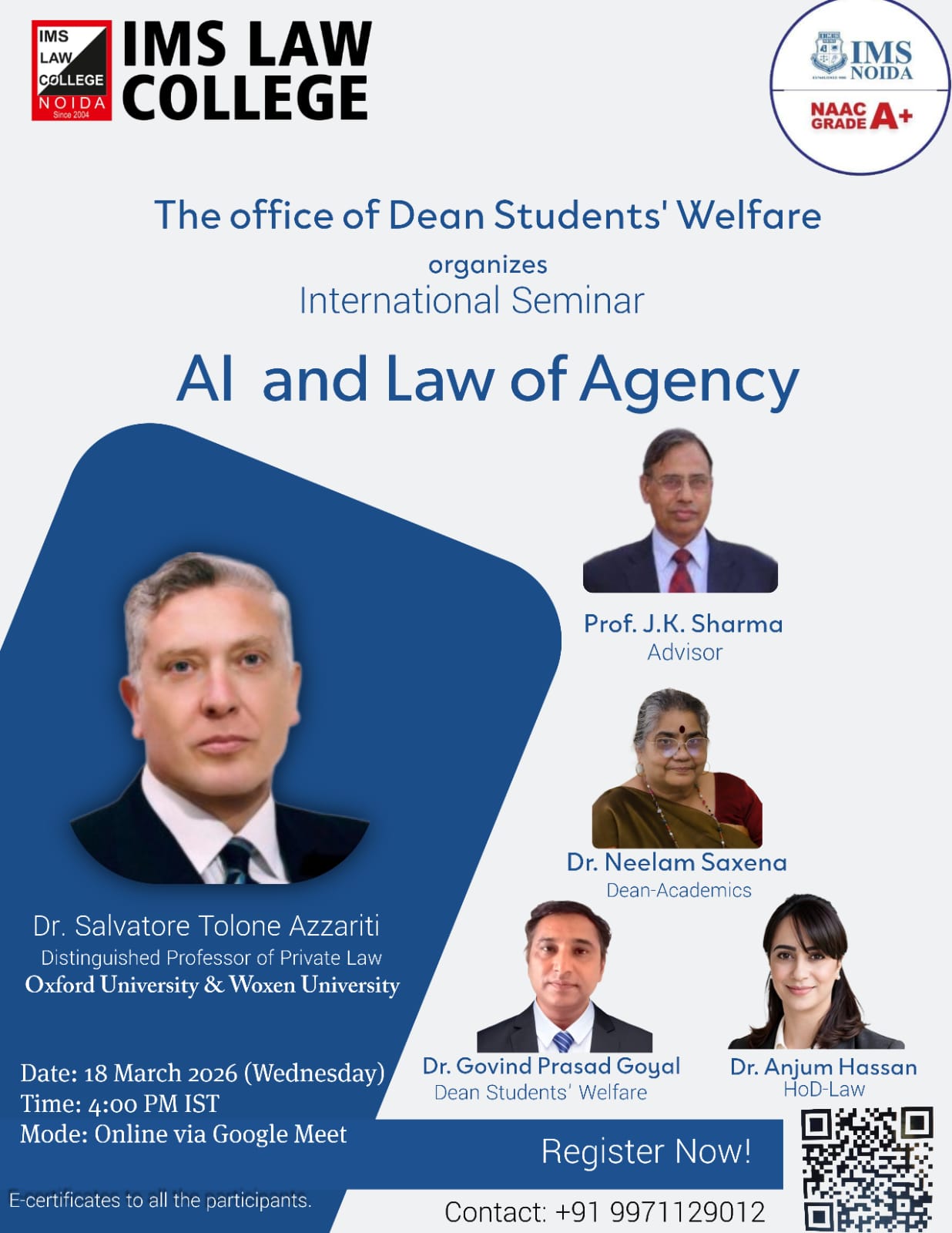 International Seminar on “AI and Law of Agency” on 18 March 2026 (Wednesday) at 4:00 PM IST via Google Meet (Online)