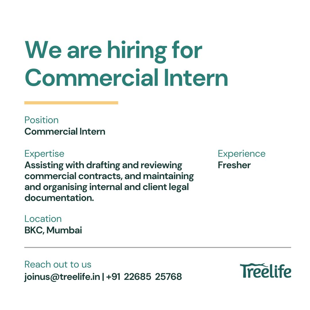 Treelife is inviting applications for the position of Commercial Intern for its Mumbai office.