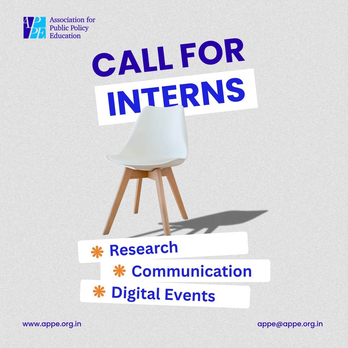 The Association for Public Policy Education (APPE) invites applications for its internship programme aimed at supporting and advancing public policy education in India.