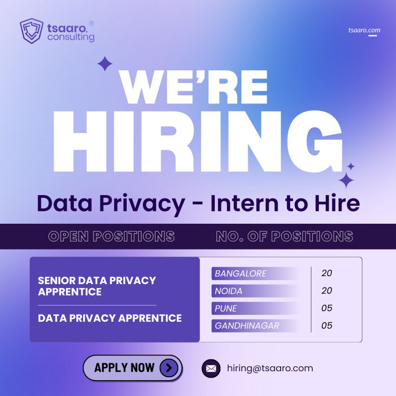 Tsaaro Consulting is inviting applications for its 2-Year Intern-to-Hire Cohort Program, designed to groom early talent into future consulting professionals in Data Privacy, Cybersecurity, Tech Law, GRC, and AI Governance. High performers during the training phase may be offered full-time positions.