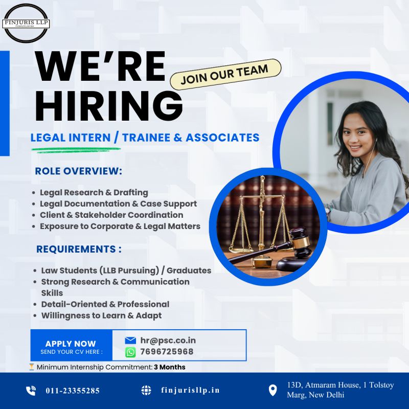 Finjuris LLP is inviting applications from law students and recent graduates for an on-site legal internship at its office in Connaught Place, New Delhi.