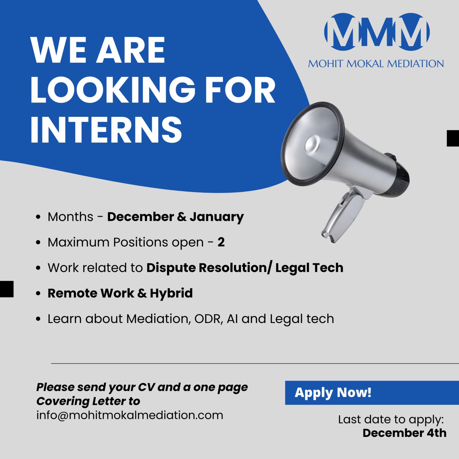 Mohit Mokal Mediation (MMM) is a leading practice specializing in dispute resolution, mediation, and legal technology solutions. The organization is at the forefront of integrating AI and Online Dispute Resolution (ODR) into legal practice, providing innovative solutions to clients while promoting efficient and collaborative dispute management. Interns will gain exposure to cutting-edge legal tech tools and hands-on mediation experience, making it an ideal opportunity for students and early-career professionals interested in the intersection of law and technology.