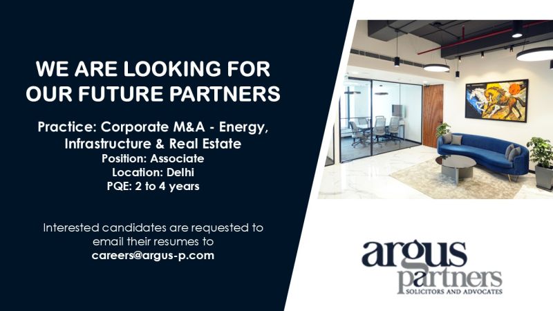 Job Opportunity | Associate – Corporate M&A (Energy, Infrastructure & Real Estate) | Argus Partners | Delhi | Paid