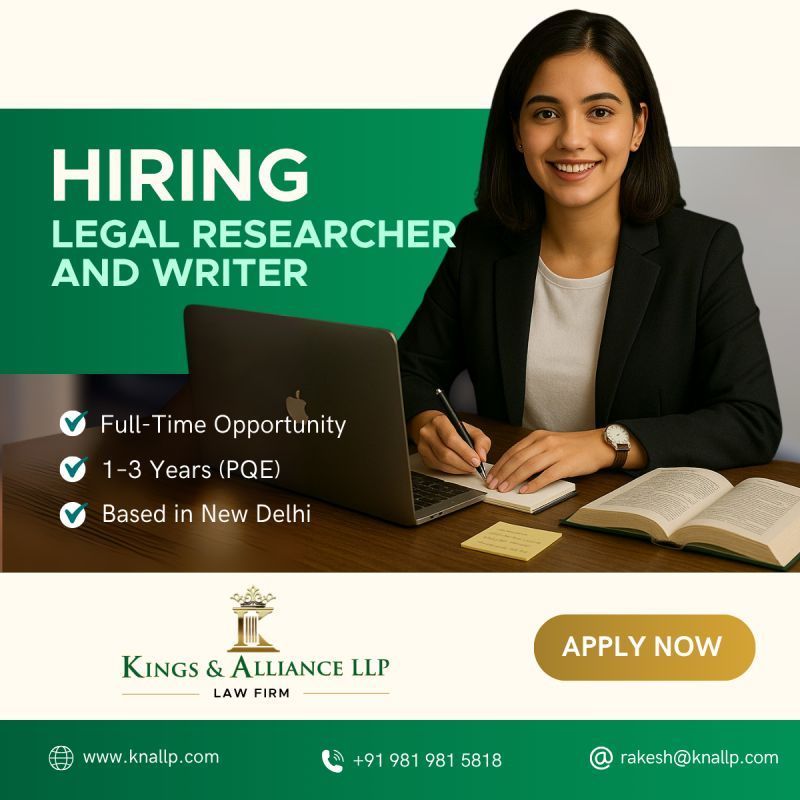 Kings & Alliance LLP is inviting applications for the position of Legal Researcher & Writer. This role is designed for individuals who possess strong analytical thinking and a natural inclination towards legal research and writing.