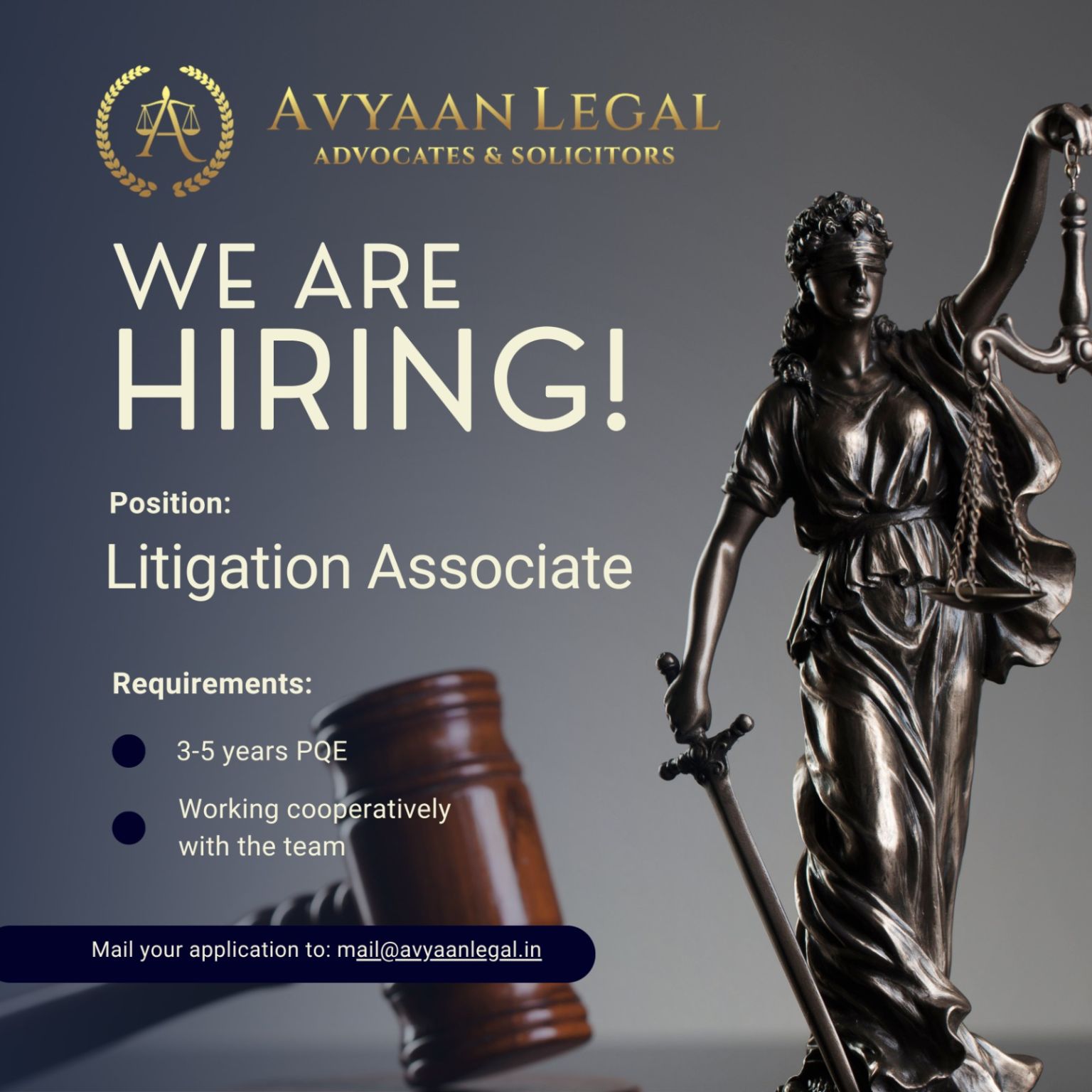 • Send your CV to: mail@avyaanlegal.in