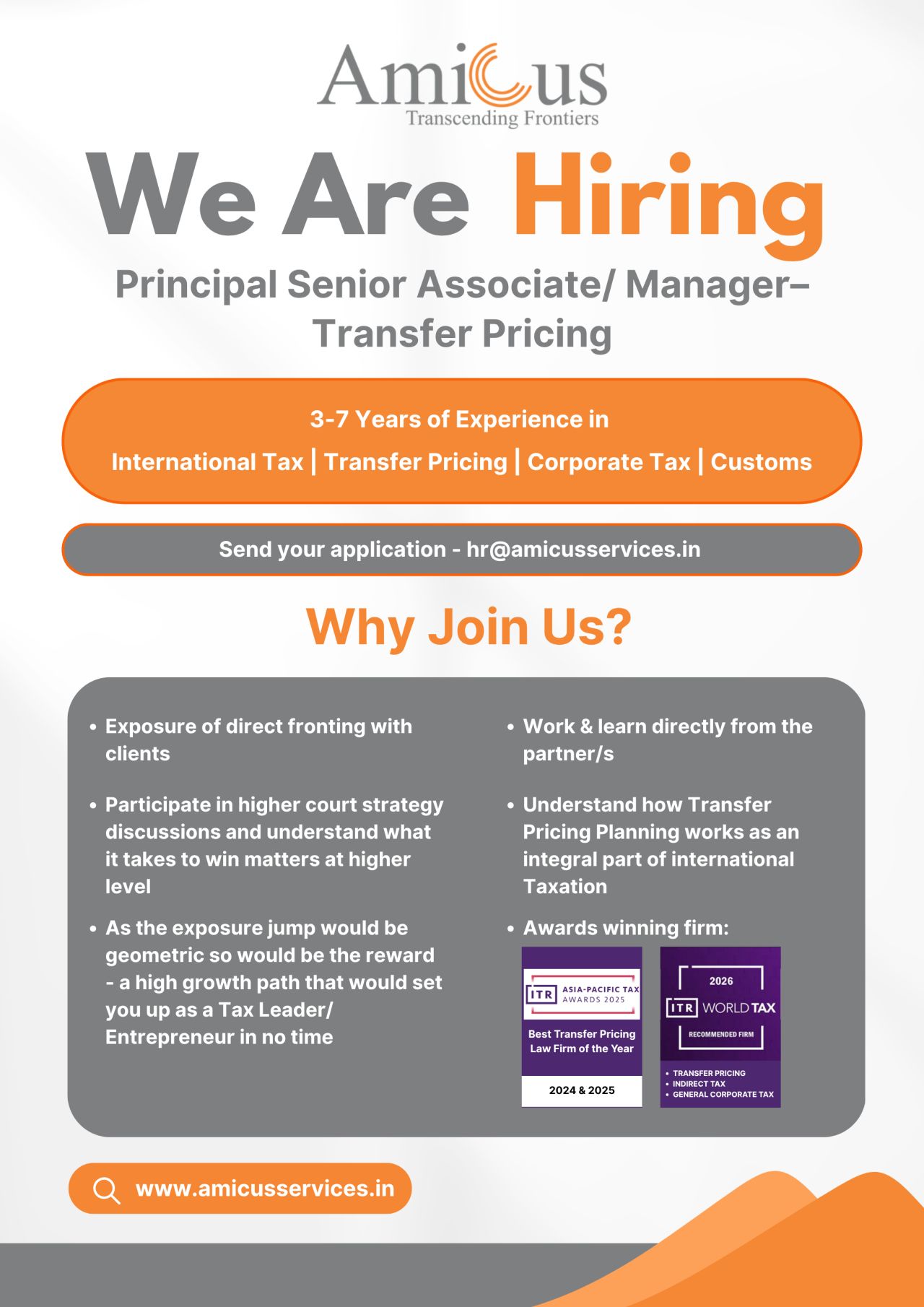 This role is suited for professionals looking to build expertise in international taxation, corporate advisory, and regulatory compliance.