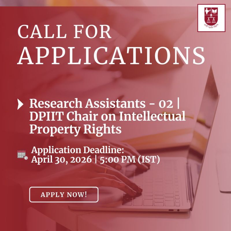 National Law School of India University is inviting applications for two (2) Research Assistant positions under the DPIIT Chair on Intellectual Property Rights.