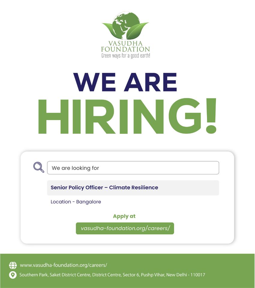 Vasudha Foundation India is hiring a Senior Policy Officer – Climate Resilience. This role focuses on shaping India’s low-carbon and climate-resilient pathways through research, policy development, and strategic analysis.