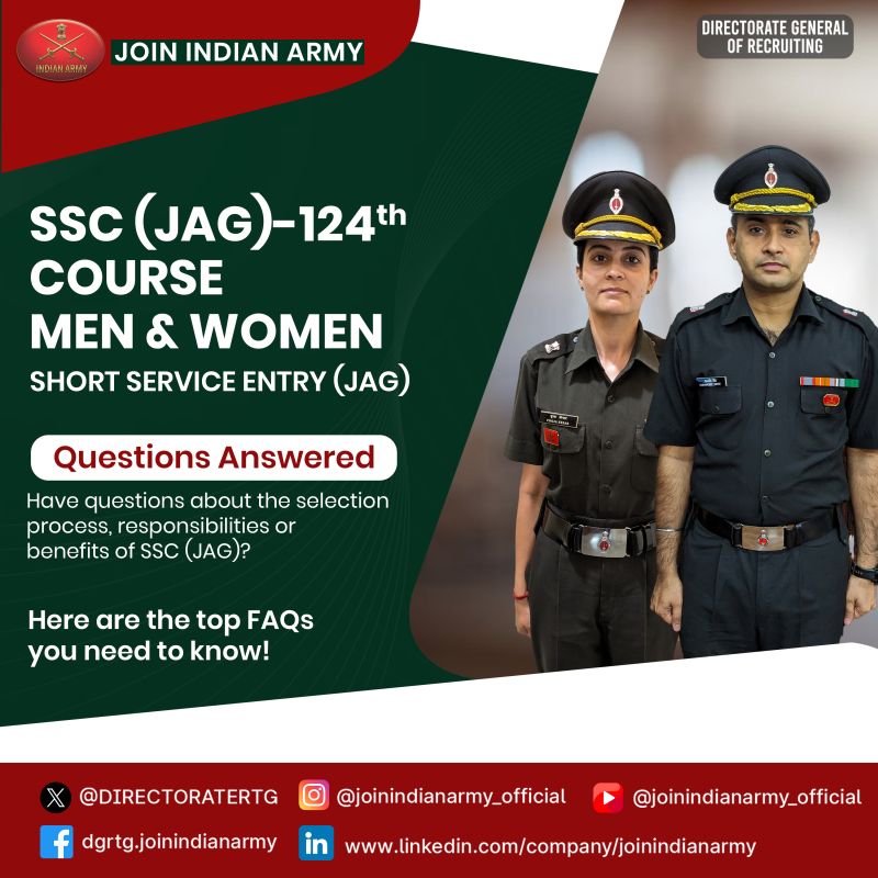 The Indian Army has opened applications for the Short Service Commission (JAG) – 124th Course for both men and women law graduates.