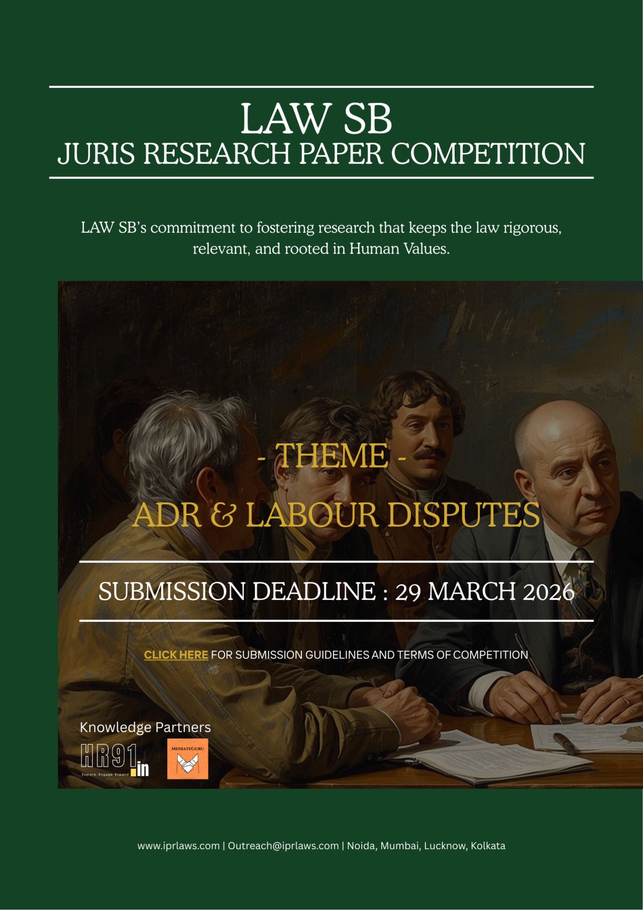LAW SB | iprlaws.com, in association with MediateGuru and HR91.IN, invites students, researchers, academicians, and legal professionals from across the country to participate in the LAW SB Juris Research Paper Writing Competition 2026.