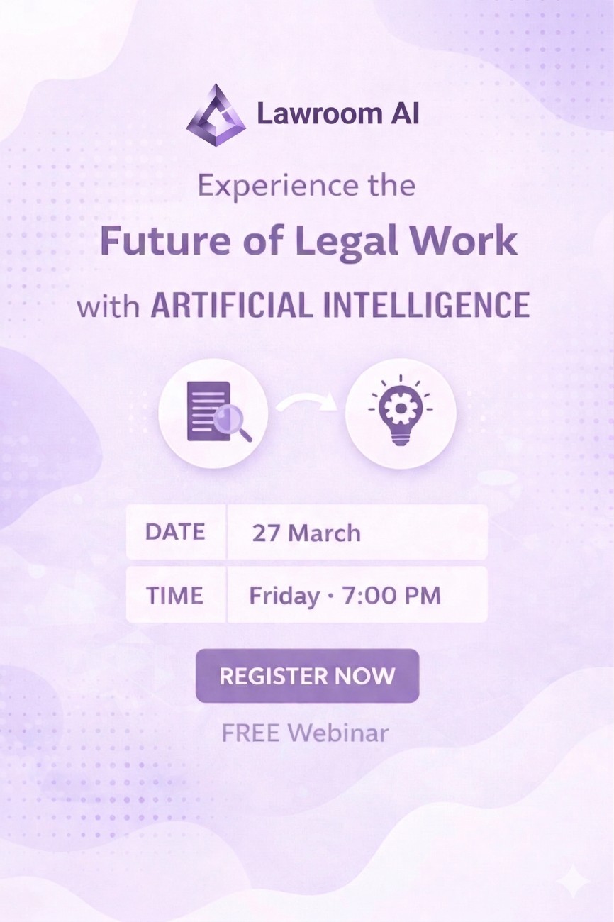 LAWROOM AI cordially invites law students, academicians, legal professionals, and research enthusiasts to an insightful one-day online webinar on “Legal AI Webinar: Future of Legal Work with Artificial Intelligence.”