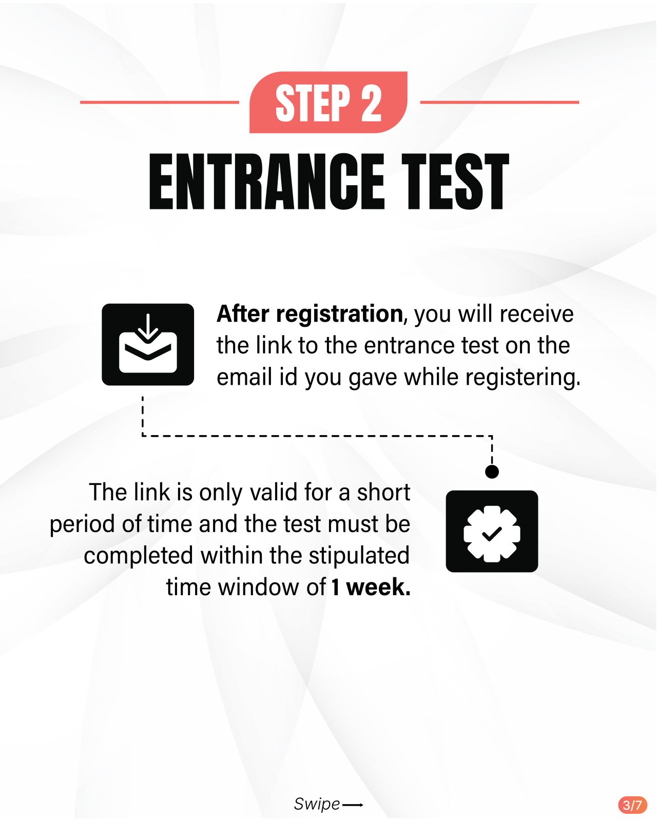 After successful registration, applicants will receive a link to the entrance test on the email address provided at the time of registration.
