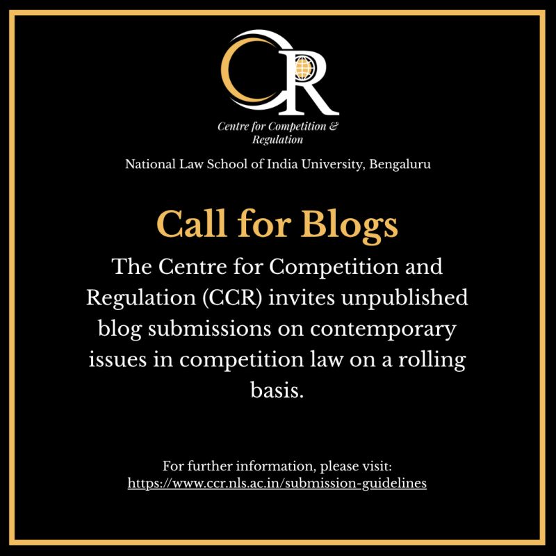 The Centre for Competition and Regulation (CCR), NLSIU is inviting submissions for its CCR Blog on a rolling basis. This opportunity is open to students, practitioners, and researchers interested in competition law and regulation.