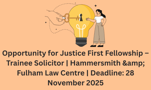 Hammersmith and Fulham Law Centre is inviting applications for the Justice First Fellowship – Trainee Solicitor position, commencing in April 2026. This opportunity allows aspiring solicitors to train within a leading community law centre, gaining hands-on experience in providing access to justice and supporting vulnerable clients.
