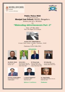 Public Police NGO in association with Manipal Law School(MAHE), Bengaluru is organizing a Webinar on “Misleading Advertisements Part -2”.